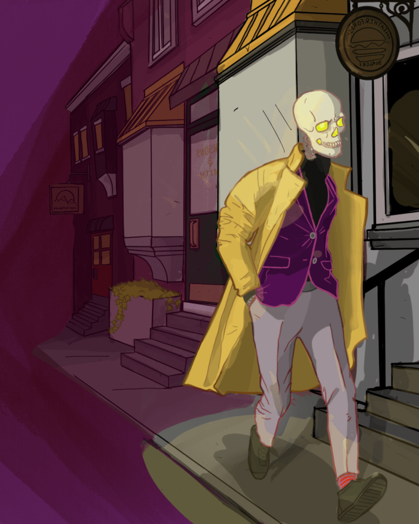An Opposed character who is trying to eke out an unliving solving murders, chasing down leads, and helping out mysterious clients; if only the local police force wasn’t so ornery about it and entirely staffed with paladins who have this tedious issue with the undead (After p. 15)
